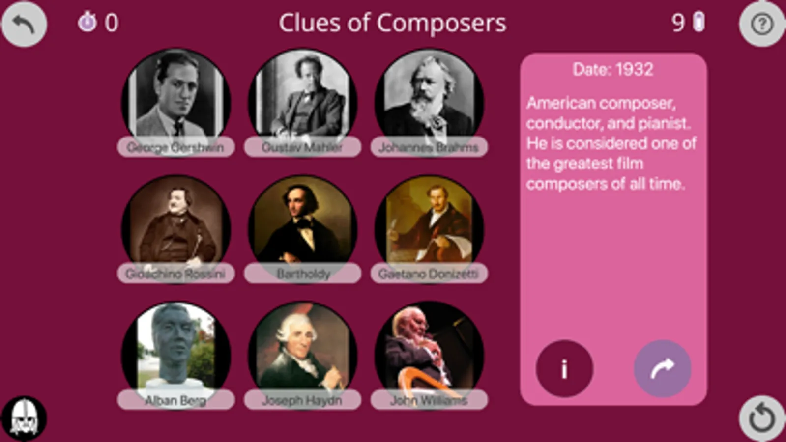 How fast can you recognize items from simple clues, such as quotes from movies and books or works from composers? In Clues, you are given 9 images, and presented one clue at a time.