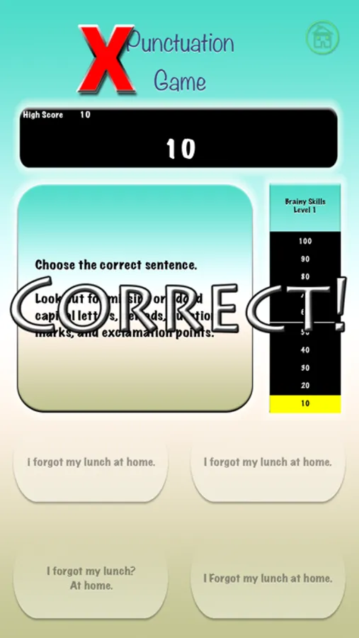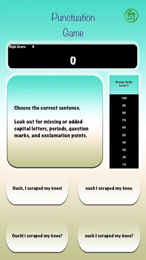 Brainy Skills Punctuation game is made to help children and young adults learn how and when to apply correct punctuation in order to formulate a proper sentence. The interactive format creates a challenging yet fun atmosphere to help identify and reduce errors while learning grammatical rules at the same time.