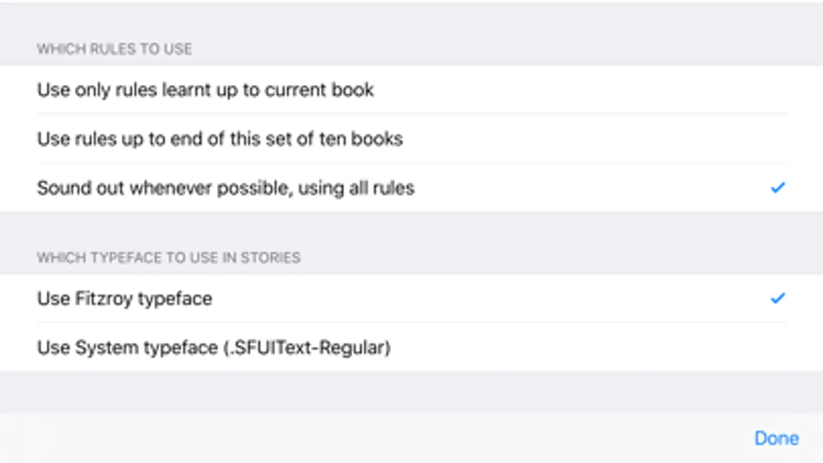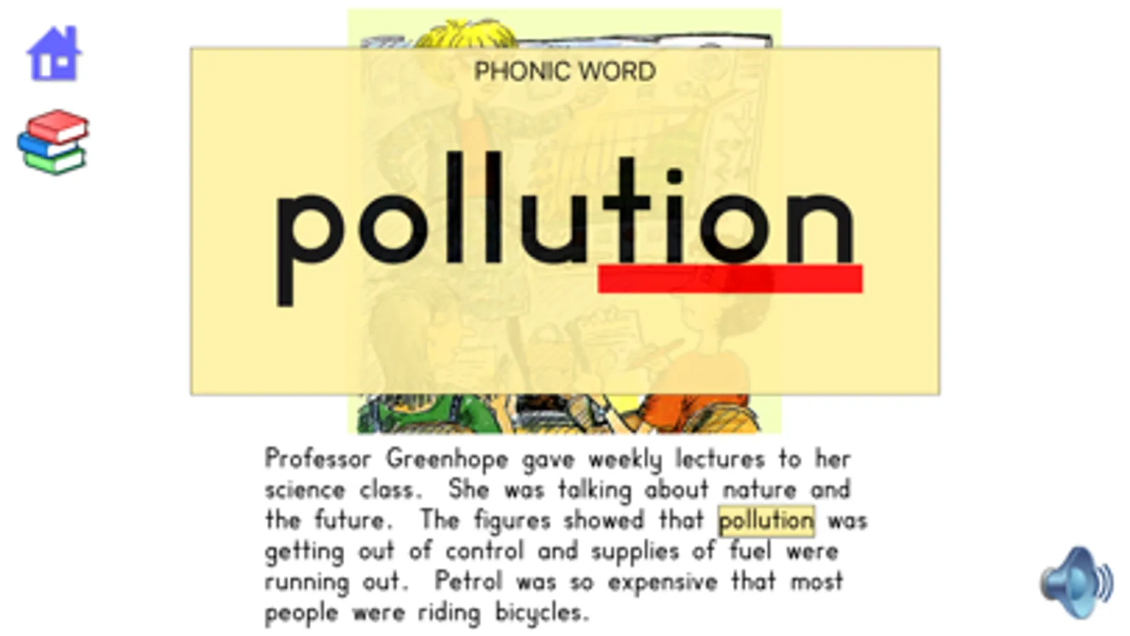 There are several sounding-out options available. All speech is high-quality recording. The interface is designed for young fingers and can be used by the student alone or with a tutor.