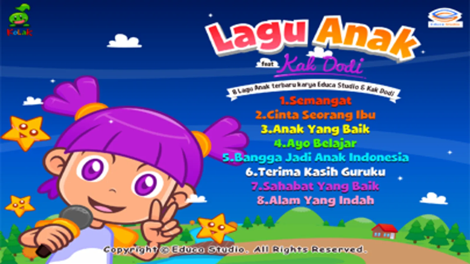 Siapa yang suka menyanyi? Pasti semua anak Indonesia suka menyanyi kan? Kali ini KOLAK "Seri Koleksi Lagu Anak" ingin mengajak semua anak Indonesia untuk bernyanyi bersama. Lagu anak kali ini diciptakan oleh Kak. DODI. Ada 8 lagu yang menarik dan asyik dinyanyikan. Sekali mendengar, kalian pasti bisa menirukannya. KOLAK juga dilengkapi dengan gambar dan animasi yang menarik sehingga anak-anak tidak akan bosan dan terus tertarik untuk belajar bernyanyi. Ayo kita intip lagu apa saja yang ada :