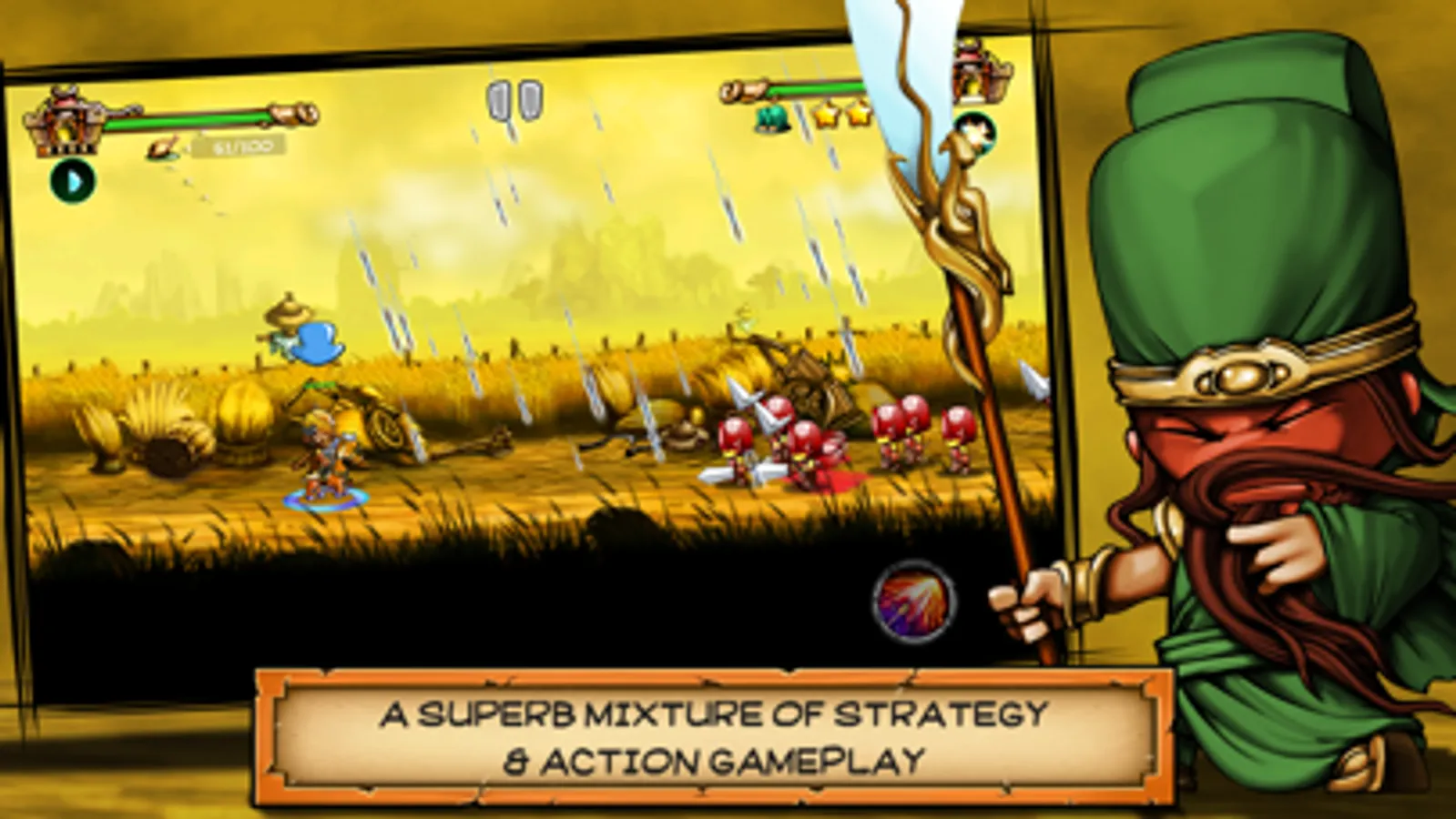 Upgrade and defend your castle! Send out your troops to crush the Usurpers forces! Provide your units with all the upgraded gear that they need in order to wipe out your enemies. Use strategy and cunning to make it to Castle and defeat the one that holds your Emperor hostage.