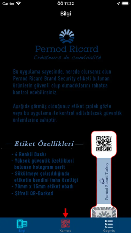 Bu uygulama sayesinde, nerede olursanız olun Pernod Ricard Brand Security etiketi bulunan ürünlerin güvenli olup olmadıklarını rahatça kontrol edebilirsiniz...