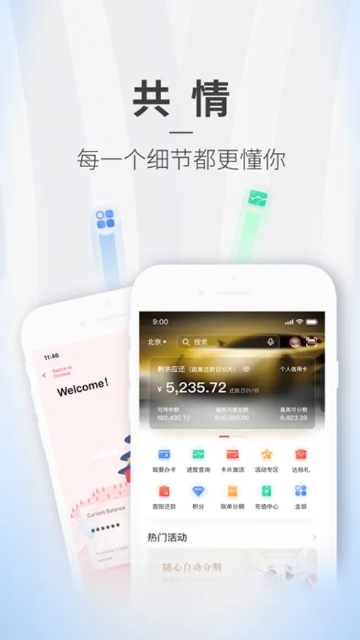 卡片管家:激活、挂失、换卡、支付管理;一站式管家服务。
