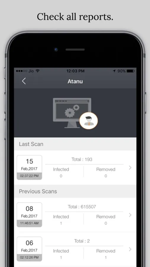 4. Report: Get an overall security status of the total scanned files and the ones infected. Receive updates on PC and parental control reports as well.
