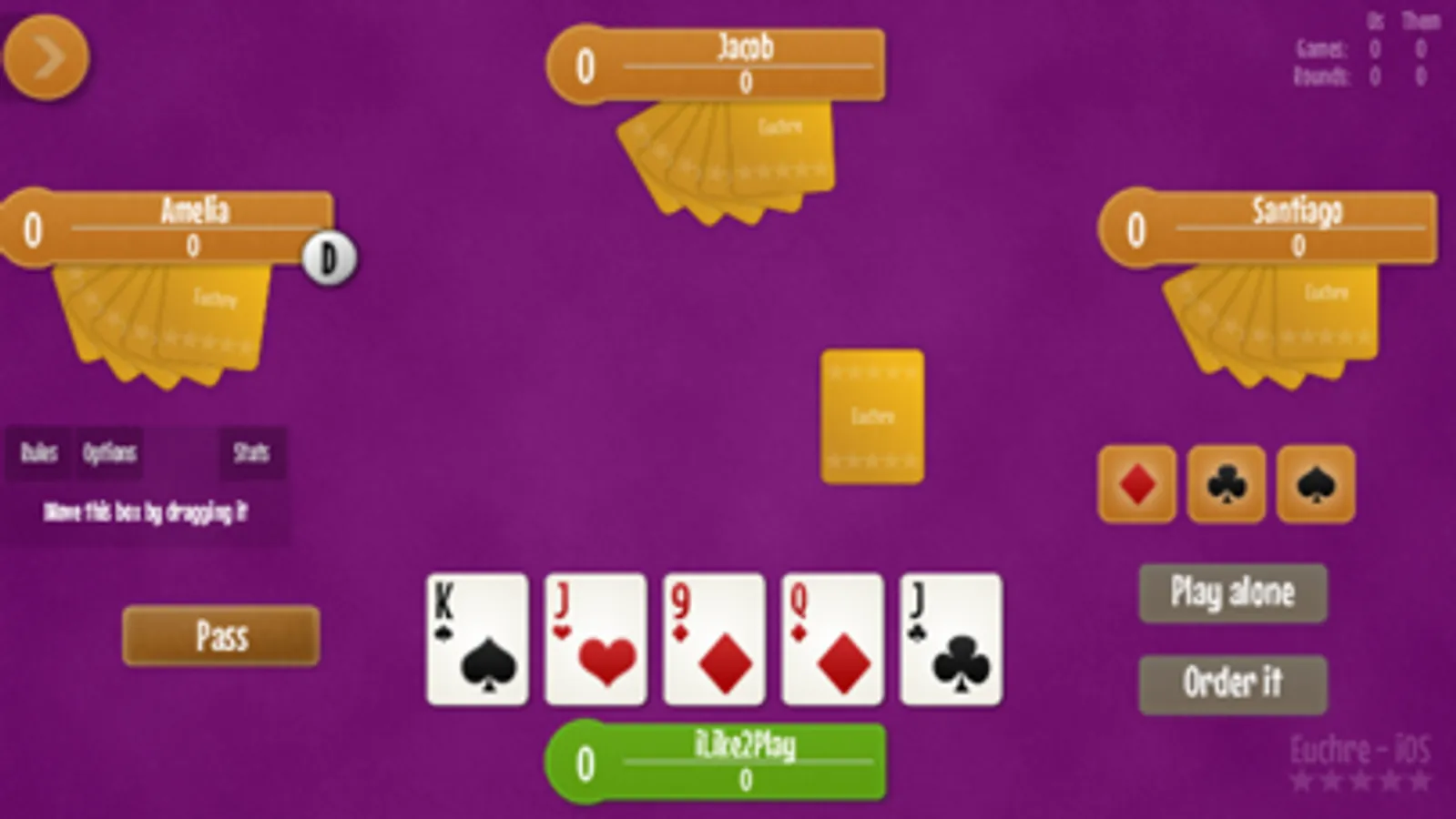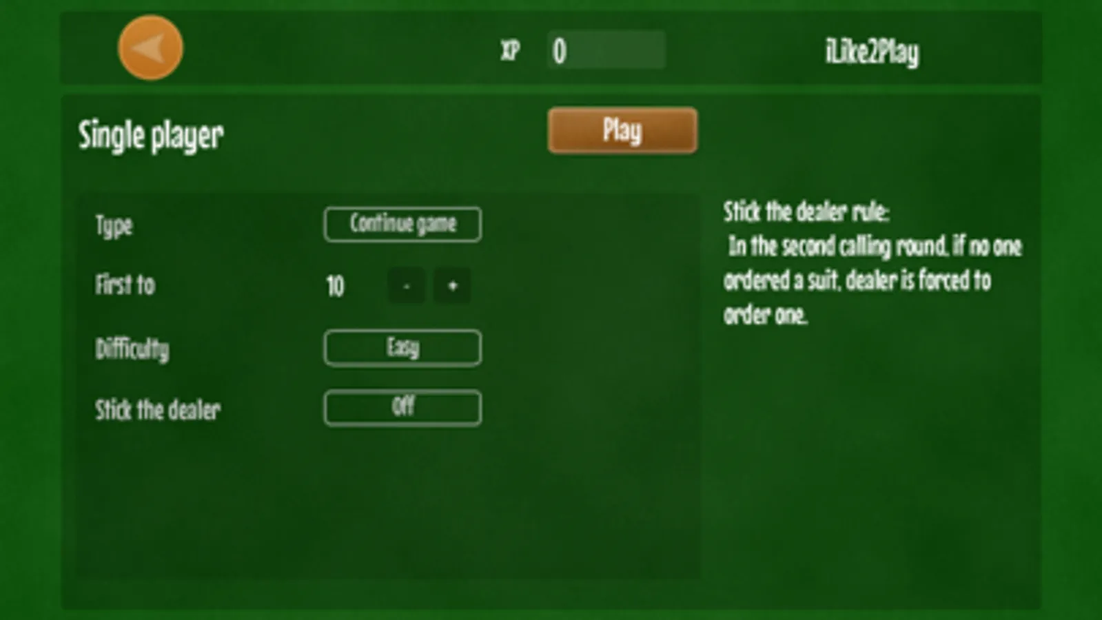 In round 2, players have the option to name a suit (other than turn-up card's suit), to pass turn or to name a suit and play alone against another team. If stick the dealer rule is on, the dealer (last one to make a choice) will be forced to name a trump in the round 2, else, if it's set to off, the dealer button moves to next players and cards will be reshuffled.
