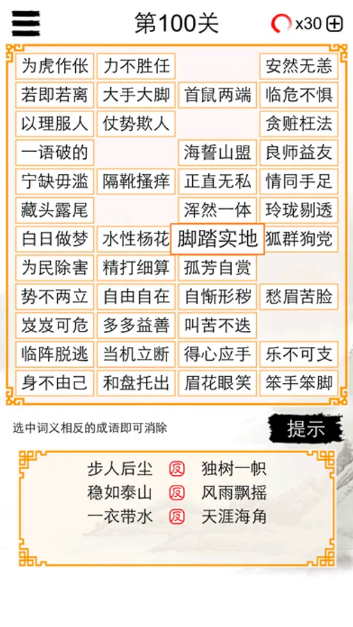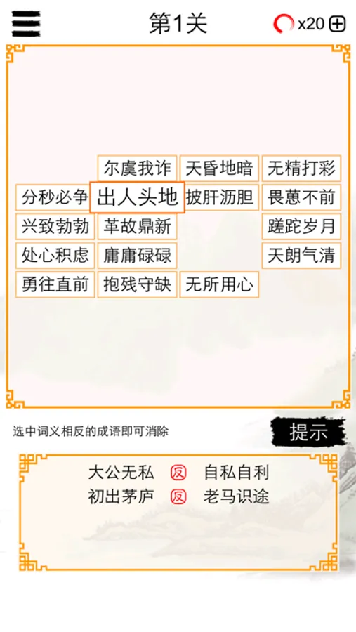 选中词义相反的成语就能消除,操作顺滑爽快,根本停不下来。