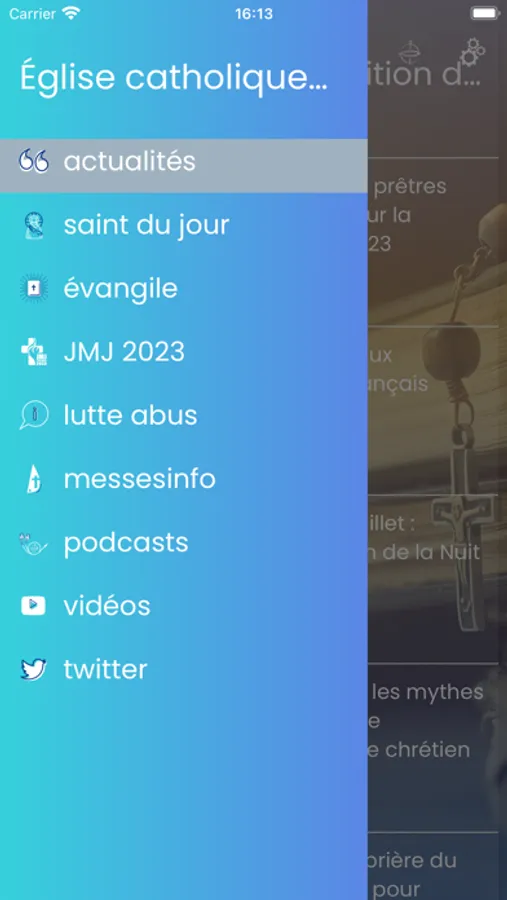 Cette application a vocation à apporter une information de référence sur la vie de l'Eglise en France et de témoigner de sa vitalité.