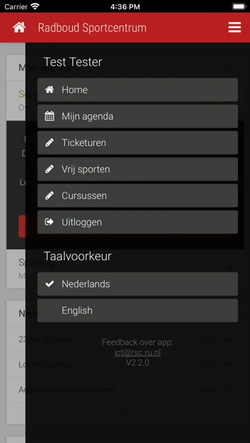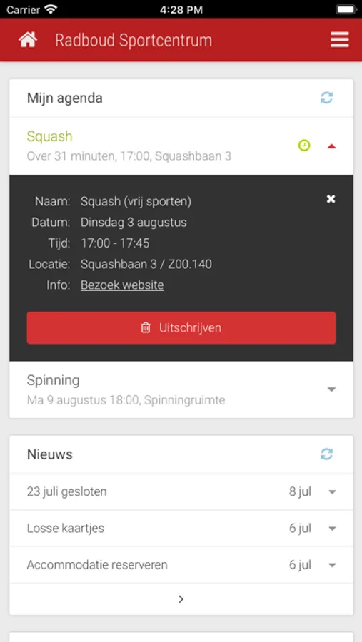 With this official app for customers of the Radboud Sports Centre (RSC) Nijmegen you can: