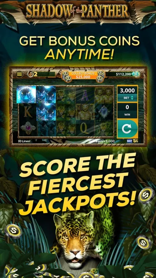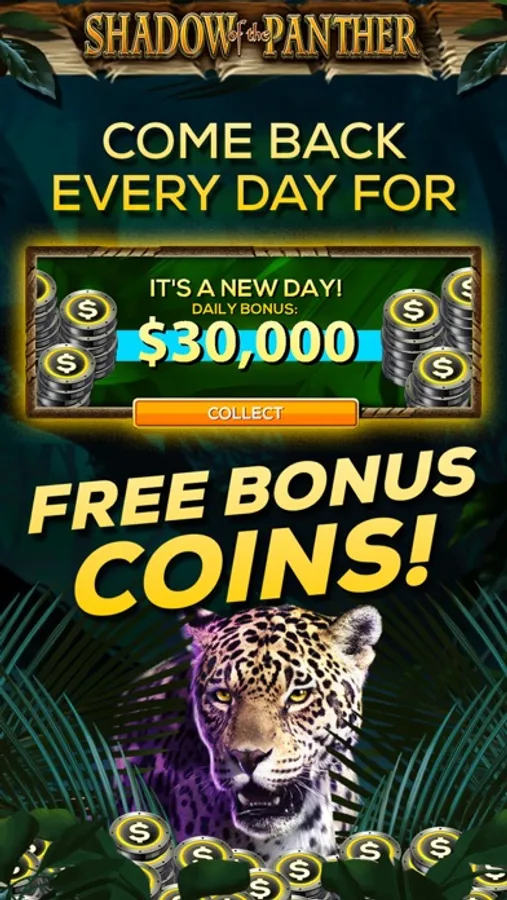 Introducing Shadow of the Panther, one of the newest slot apps in High 5 Casino’s family of mobile apps! Now you can play one of the most successful Las Vegas slot games from the comfort of your home or while on the go on your mobile device. Super Stacks and Split Symbols bring the jungle to life in this exciting slot game and boost your chances of hitting the jackpot! Download now for FREE and collect your Welcome Bonus to get started!