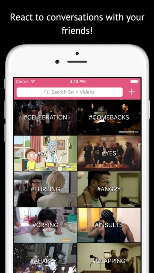 Swirl allows you to send funny videos and GIFs right from your favorite messaging app. Make your messages come to life with Swirl!