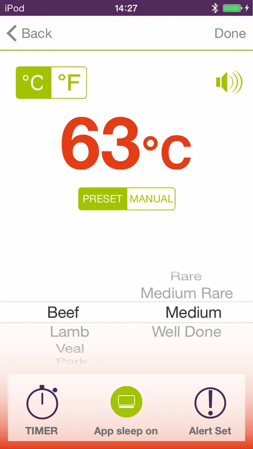 The Cook’m application is used in conjunction with Mastrad’s connected (Bluetooth) probe. Together, they will make it possible for you to monitor and follow your dishes’ cooking temperature remotely, right from your mobile devices.