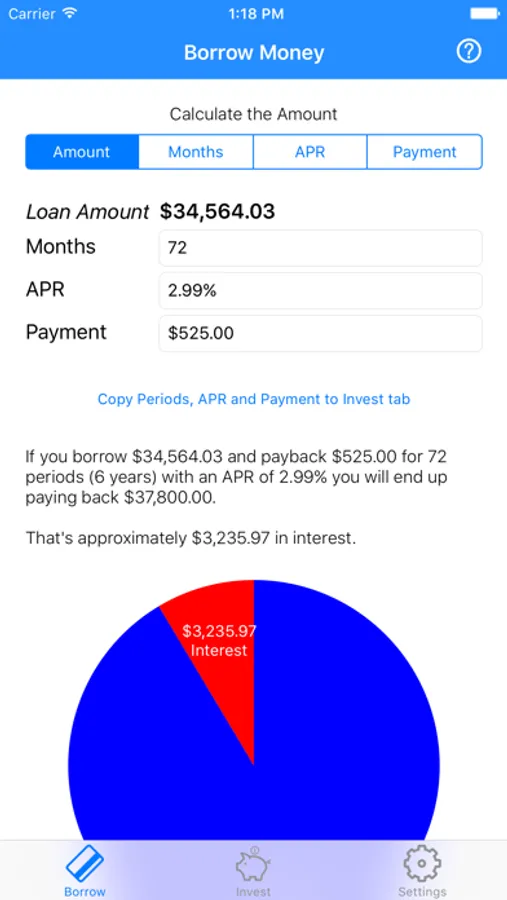 Delay It makes it easy to calculate a loan payment on one tab and then consider that payment as an investment on another tab.