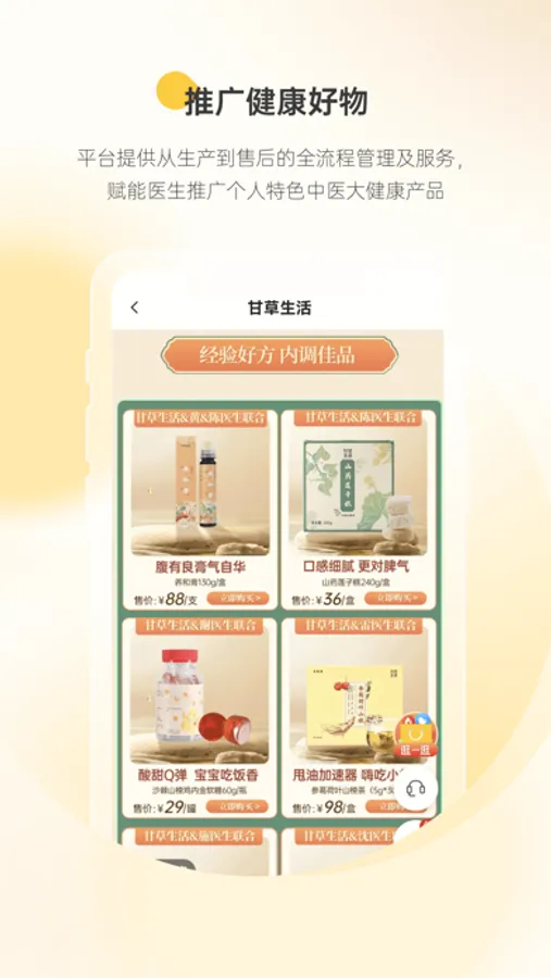 甘草医生APP是医患的24小时移动诊室,可助力医师提升行医效率、推广特色产品、打造个人品牌,同时为患者提供健康咨询、在线复诊开药、中药配送等专业、优质、高效的中医药服务。目前,甘草医生已成为15W+中医师、500W+患者的共同选择,服务范围覆盖全国34个省及行政区。