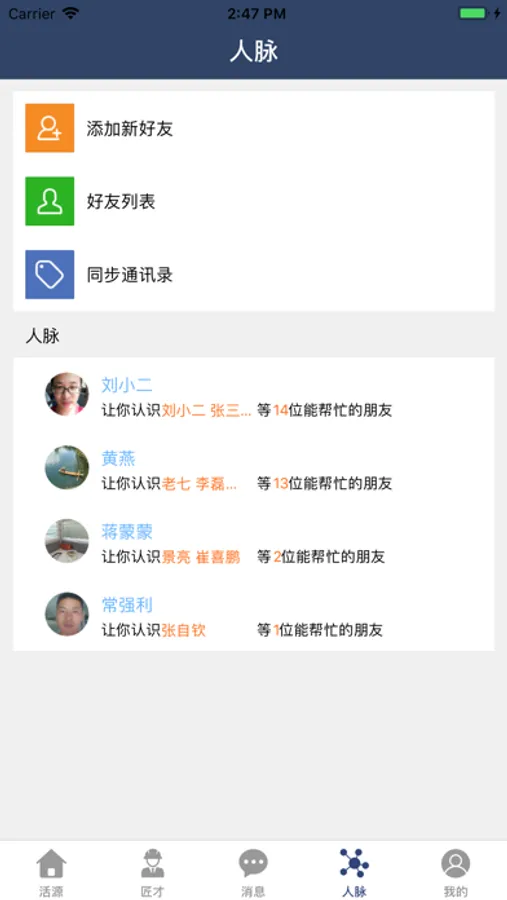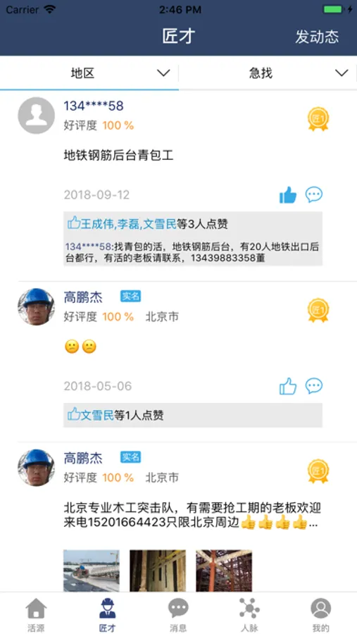2、特色功能:找活、找人、搭建人脉、信用评级;