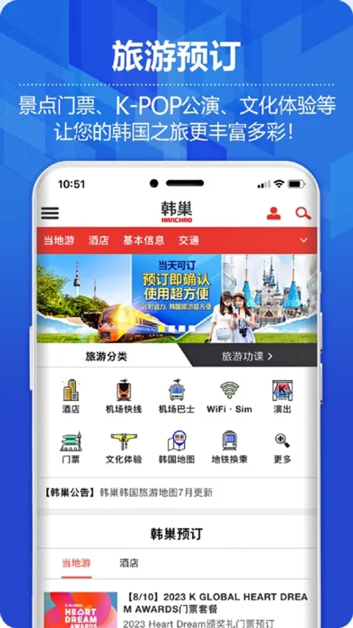 - 交通、门票、演出预订,酒店预订,WiFi手机卡等预订,优惠折扣不容错过