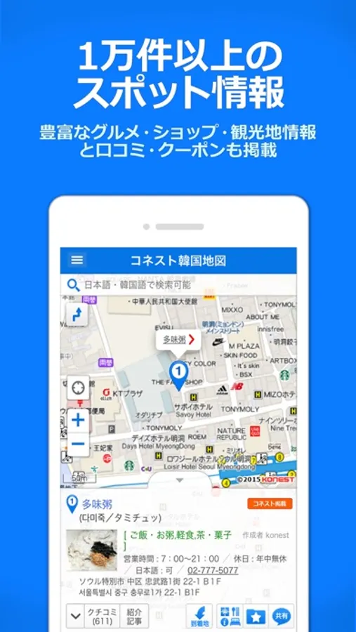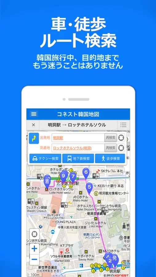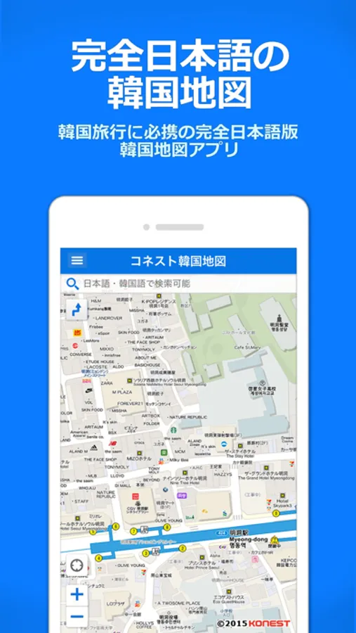 『コネスト韓国地図』は、韓国旅行に必携の完全日本語版韓国地図アプリです。