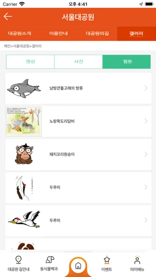 - 서울동물원 : 서울동물원 내 동물사, 동식물, 편의시설 등 다양한 정보를 테마지도 위에서 안내 받을 수 있으며, 비콘을 통해 관람객 현재 위치에 맞게 푸시알림으로 콘텐츠 제공