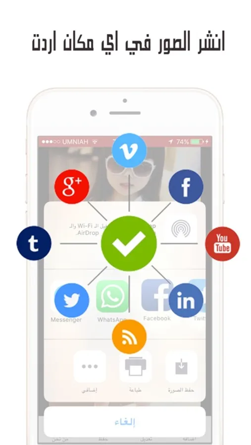 ٣. احفظ وشارك الصورة على الواتساب او تويتر او فيسبوك