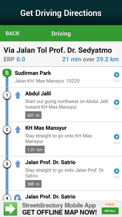 Once you download the offline map, you can use the map without internet connection and move around in Jakarta and nearby towns.
