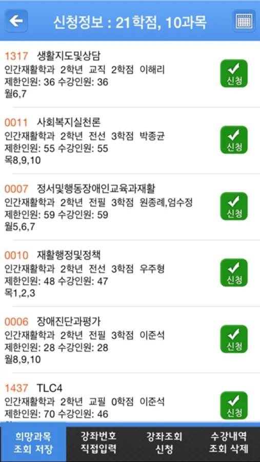 ■ 웹 수강신청과 중복 사용이 불가능 합니다.
