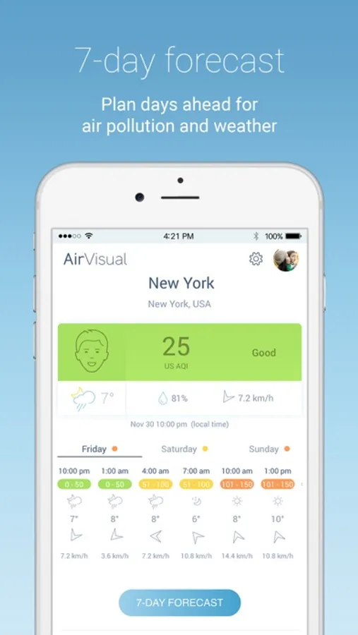 + Leading 7-Day Air Pollution and Weather Forecast: For the first time, plan your outdoor activities for the healthiest experiences a whole week ahead. Wind direction and speed forecasts to understand the wind’s impact on pollution.