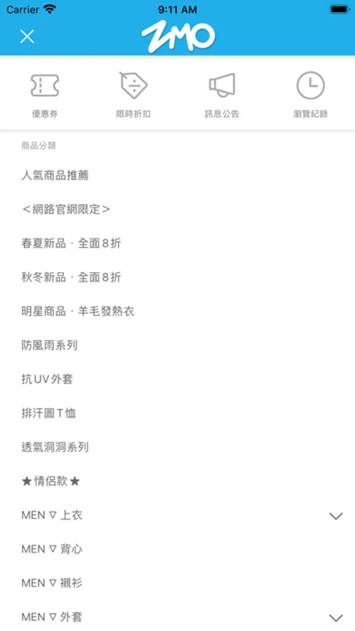 ZMO以高機能材質為訴求,發展出戶外運動休閒及居家生活系列服款。