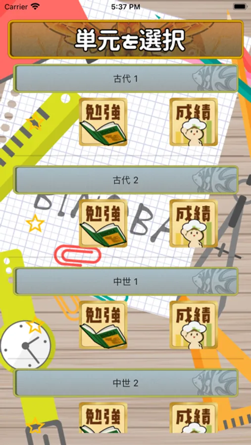単元ごとの成績を棒グラフで確認できるので、自分の成長を実感できます。