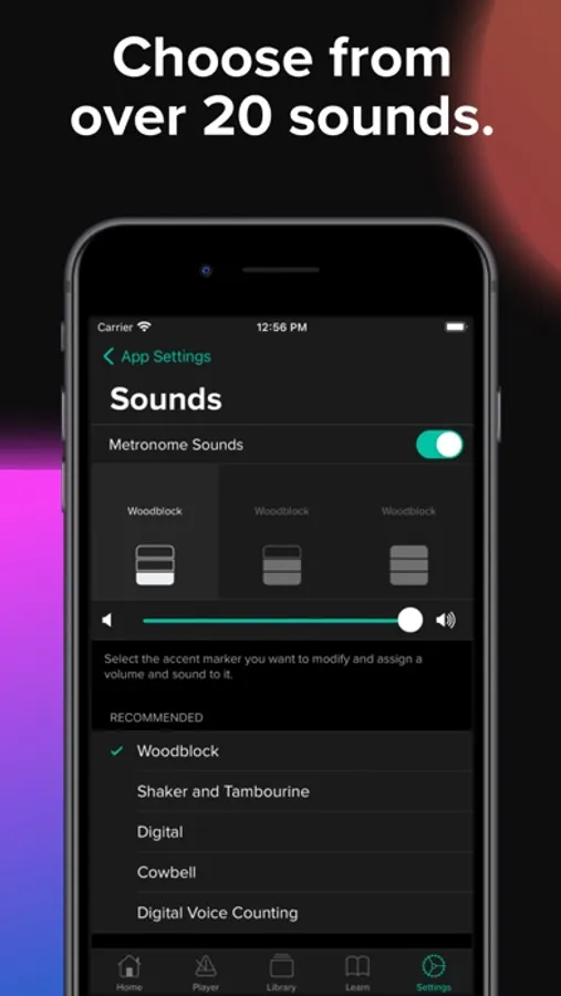 • Powerful customization: choose from over 20 sounds, switch between our dark & light theme & more