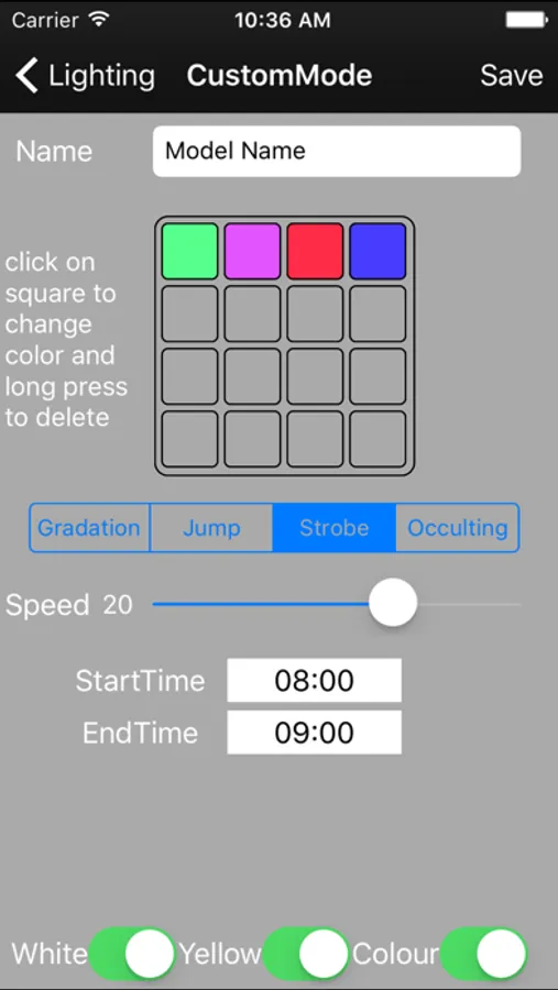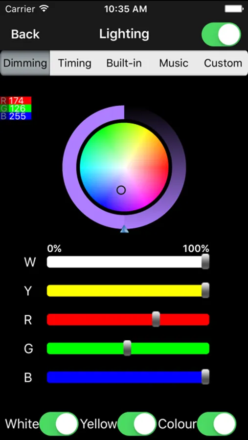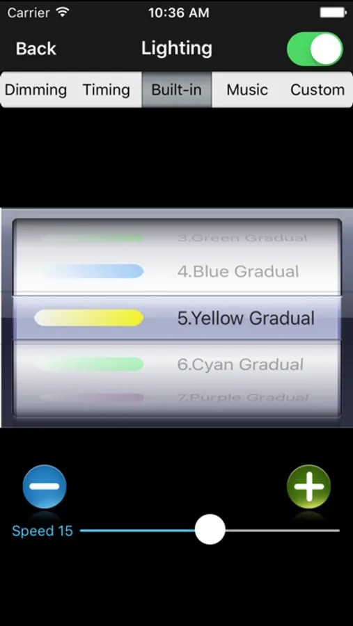 The software is designed for smart LED devices. Our equipment via a mobile phone connection lets you control the LED lighting effect, you can customize the model gradients, strobe lights, jumping, can also play the music rhythm changes, and set the time switch function LED lights. Open Mobile WIFI settings interface, connection LED device name format is "BRGlightXXXXXX" device that appears when the connection is successful, open the application, you can begin to control the lighting.