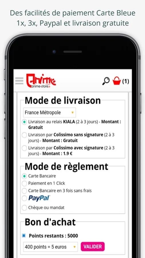 - Effectuer immédiatement des achats parmi plus de 1000 références du site.