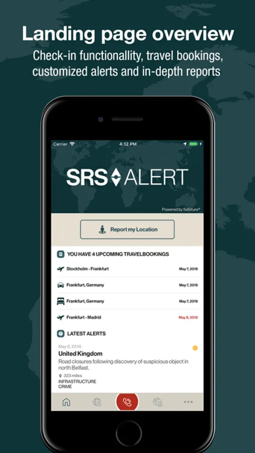 The new version of SRS ALERT has been completely re-written from the ground and comes filled with brand new design, numerous great improvements and new features designed to help you stay even safer when travelling on business.