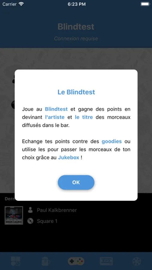 Jouez au Blindtest : Devinez le titre du morceau joué, l'artiste et essayez d'être le plus rapide. Gagnez et cumulez des points sur l'appli que vous pouvez échanger contre des cadeaux (goodies, consos, porte-clés...).