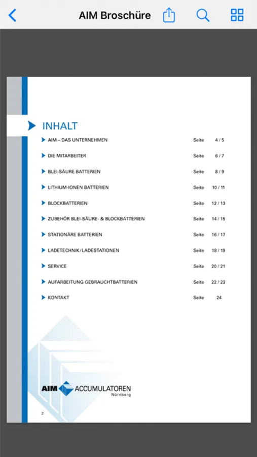 Mit der App der AIM Batterien Vertriebs GmbH erhalten Sie neben Informationen zum Unternehmen die komplette Übersicht aller Prospekte, Verkaufsunterlagen, Infobroschüren etc. zu den einzelnen Batteriekategorien. Aufgegliedert nach Themenbereichen können Sie Ihr gewünschtes Produkt herunterladen - schnell und kostenlos.