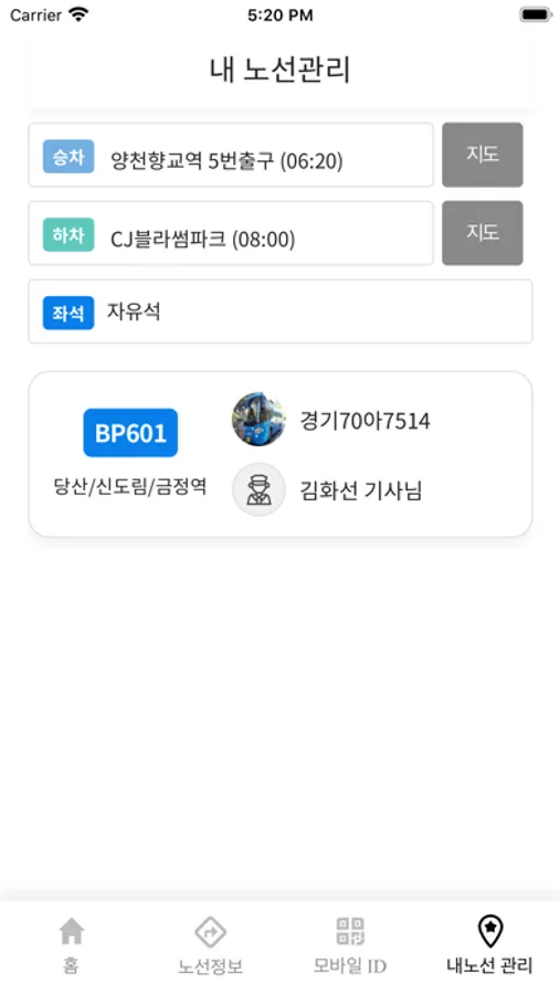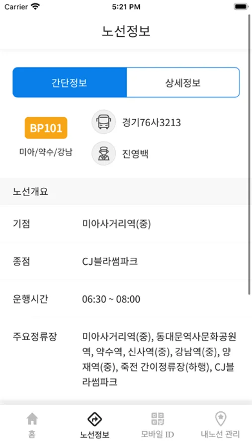 * CJ스마트버스 app 주요 기능 *