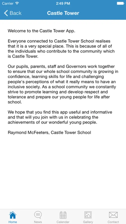 Welcome to the Castle Tower School. Everyone connected to Castle Tower School realises that it is a very special place. This is because of all of the individuals who contribute to the community which is Castle Tower. Our pupils, parents, staff and Governors work together to ensure that our whole school community is growing in confidence, learning skills for life and challenging people’s perceptions of what it really means to have an inclusive society. As a school community we constantly strive to promote learning and develop respect and tolerance and prepare our young people for life after school.