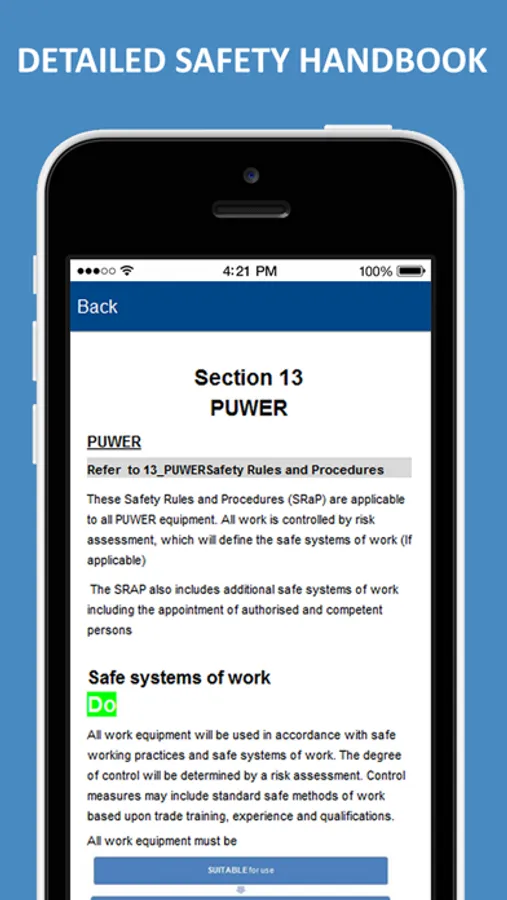 Safety Rules & Procedures is an electronic version of the Canty Compliance 'Staff Handbook'. Your work force will no longer need to carry the bulky handbook on site with them, and will be able to access the information and diagrams at the click of a finger.