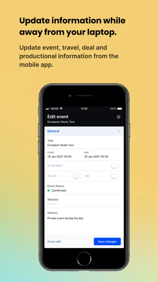 For the artists back office (ABOSS Artist): all relevant information for artists and their team of all career activities such as writing sessions, studio projects, rehearsals, meetings, financials, promo’s, interviews and more. All on a need to know basis.