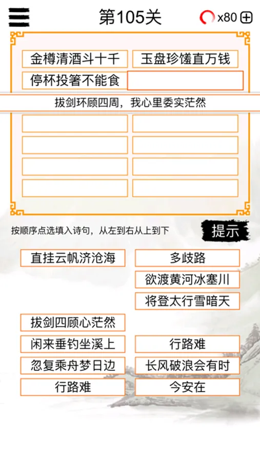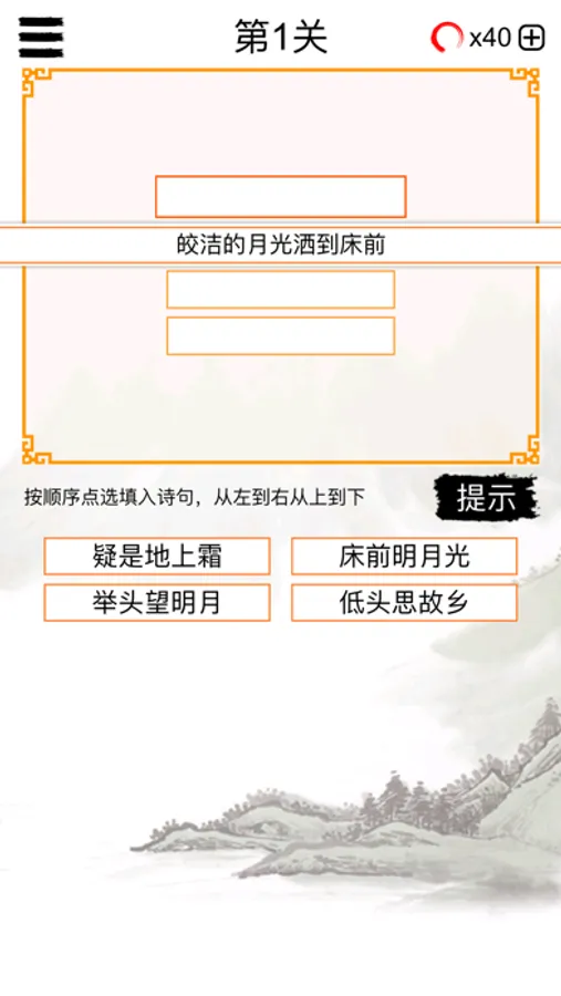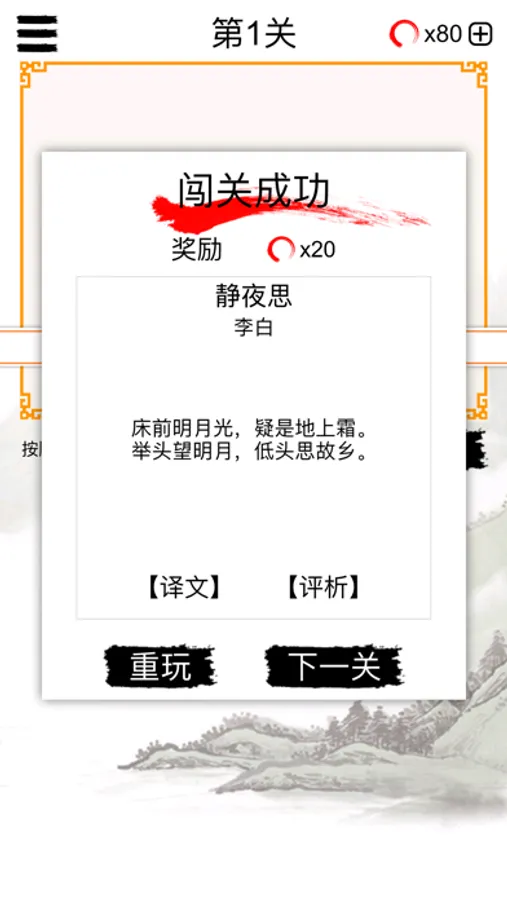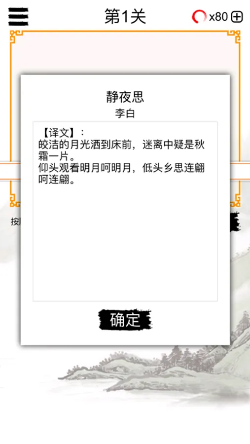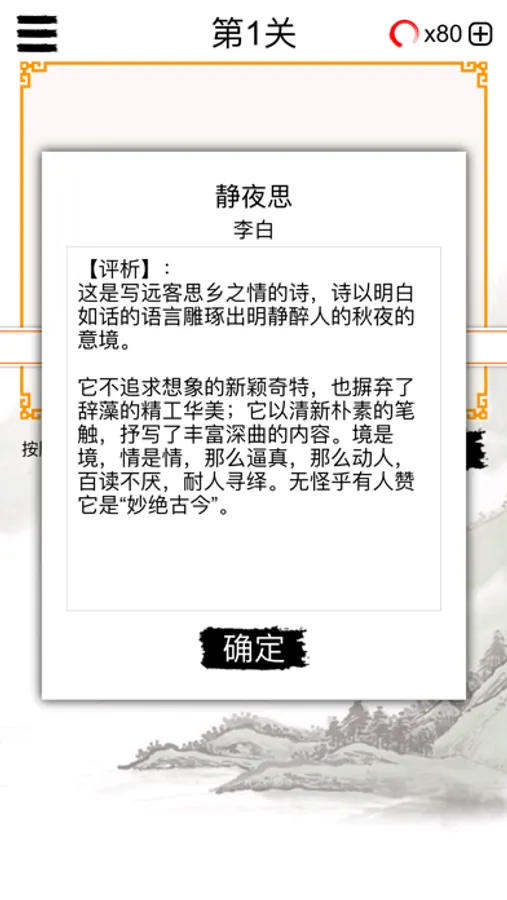 100余首古诗关卡,让你玩过瘾。从此爱上古诗词。