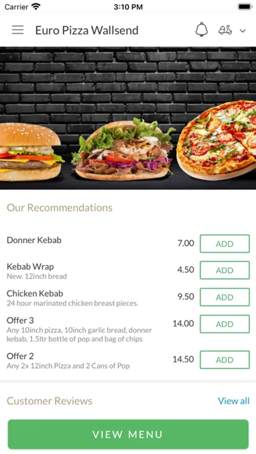 Euro Pizza in Wallsend is offering great fast food at affordable prices. Order your favourite fast food online in Wallsend only here at Euro Pizza. Please feel free to browse our website and to order online. You will be able to get up to date prices and special offers online. Thank you for visiting Euro Pizza in Wallsend. We hope you enjoy our online ordering website and your food.