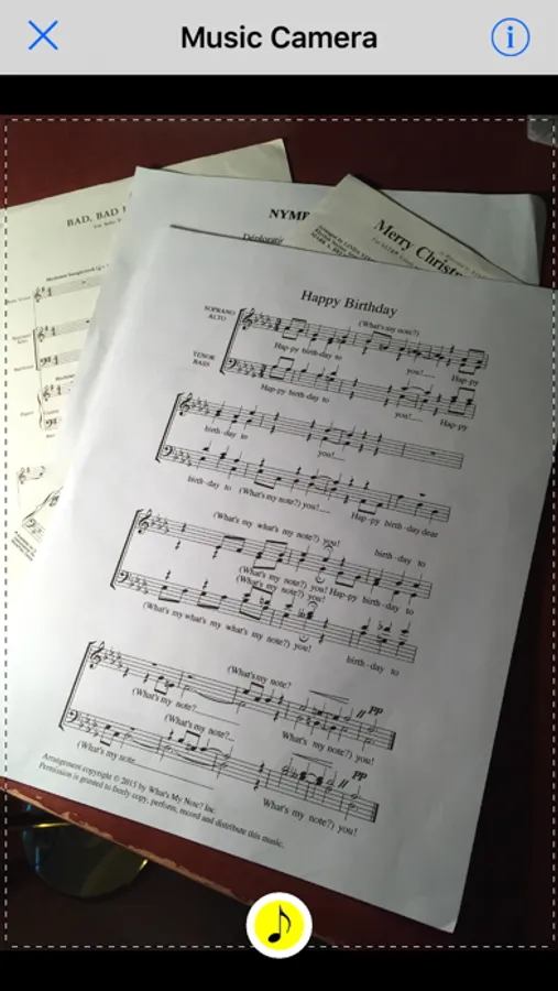 Use What's My Note? to read published choral music - the kind used by high school choruses, church choirs, musical theater, and barbershop quartets. If you are not sure that What's My Note? will read your music, e-mail us a photo, and we'll let you know.