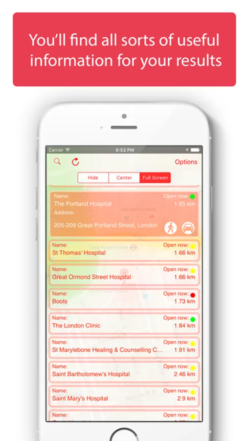 - Locate specific or any pharmacies, veterinaries, dentists, doctors or hospitals.