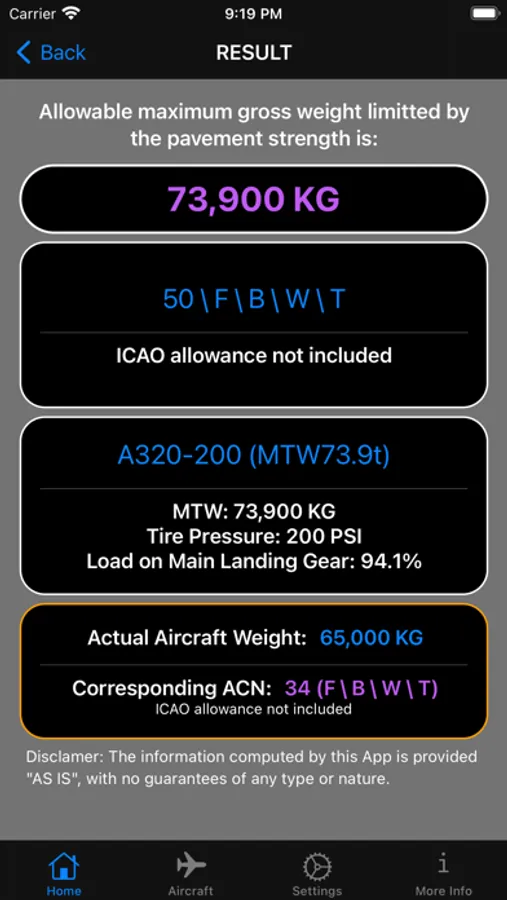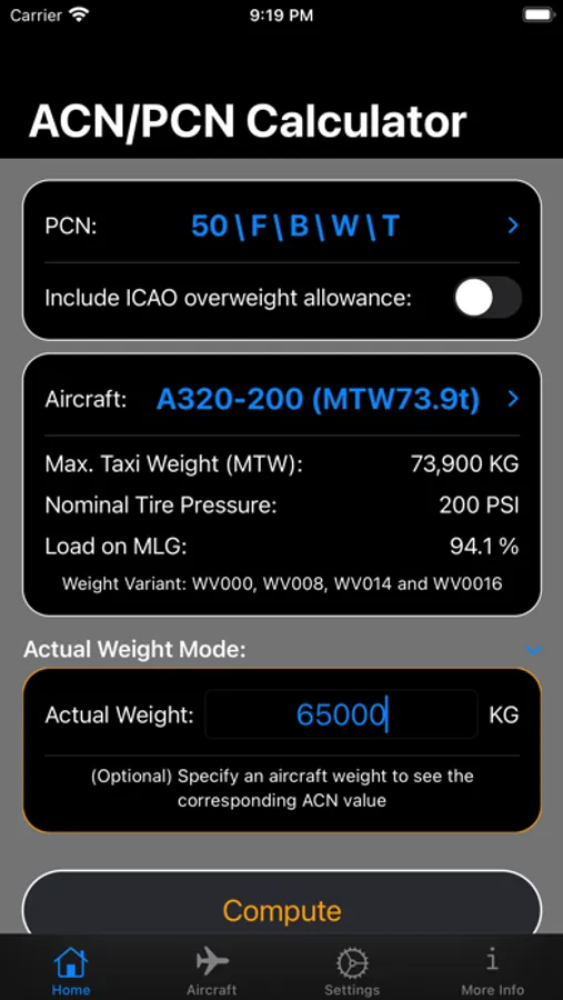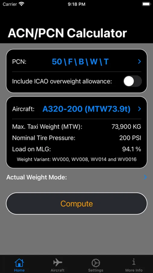 The ACN/PCN Calculator is a powerful tool designed for pilots, flight operations engineers, dispatchers, airport operators, and others to assist them in verifying the bearing strength limitations of both flexible and rigid airport pavements. Utilizing the ICAO ACN/PCN method as outlined in Annex 14 and Document 9157 Part 3, this app simplifies the process of determining the maximum allowable aircraft weight for safe operations on runways, taxiways, and aprons. To provide the most accurate results, the aircraft database used by the calculator is sourced primarily from manufacturers' published data, such as the Aircraft Characteristics for Airport Planning (ACAP) manuals. However, when manufacturer data is not available, alternative data or ICAO methods are used to ensure the reliability of the results.
