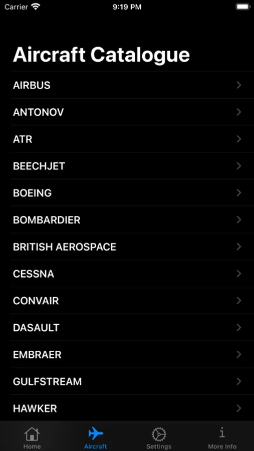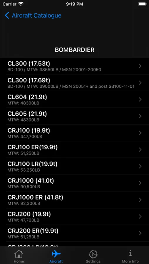If you don't find your aircraft, please send a request using feedback button in the Info tab, or check again when the App is updated.