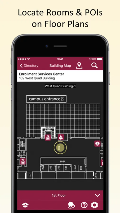 • Maps - Find classes and offices - Locate nearby bathrooms, study areas, and more