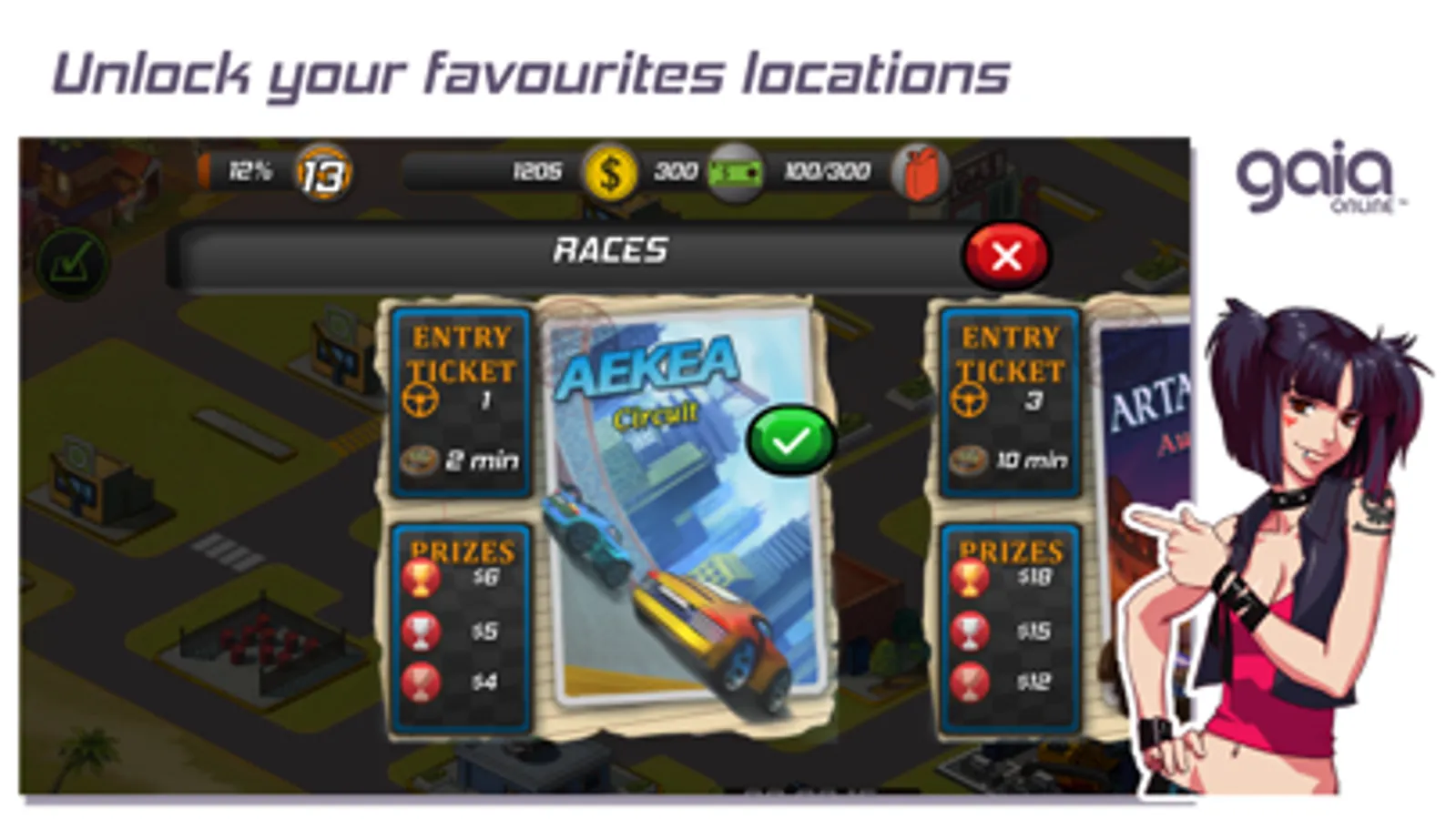 Take this Gaia Online classic on the go! Build up your own racing complex, unlock new cars and head to the races to become a racing legend!