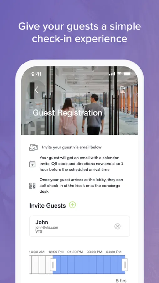 Give guests a simple check-in experience. Invite them, sign them in, and get notified when they arrive.