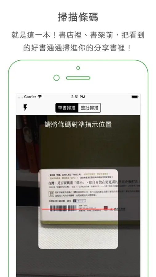 • 掃描條碼:輕輕鬆鬆將你的書櫃搬上網路。在逛書店時一樣可以掃描書籍,看大家對這本的評價。