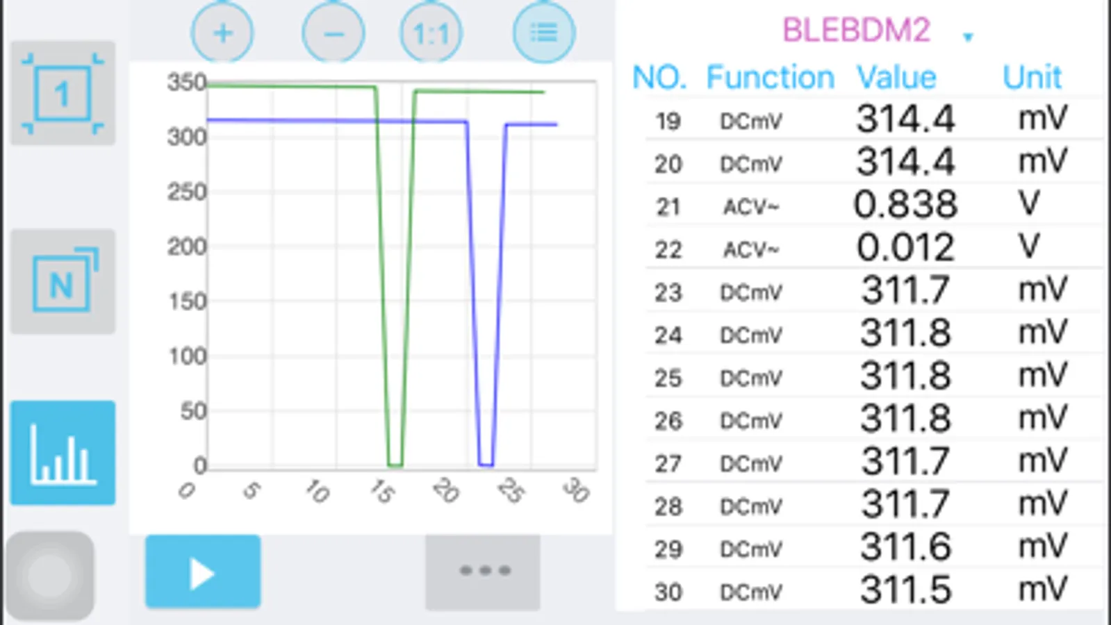 read the real-time measurement data of multimeter by low power consumption Bluetooth protocol. After recoding, drawing, analyzing the data, specific data could be saved and loaded for checking convenience.