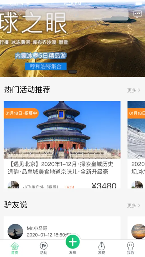 驼铃户外活动APP,基于中国户外活动专业平台——驼铃网开发的垂直APP,为户外领队及户外爱好者提供全面的服务。驼铃网有全国各地丰富的户外活动,驴友说栏目是驴友互动空间,驼铃保险提供专业的意外保险产品,驼铃商城提供专业户外用品购买。使用驼铃户外活动APP,领队可以便捷的发布和管理活动,用户可以随时随地找到自己感兴趣的活动并报名参加,可以写游记,发布驴友说、带我走(约伴功能)。