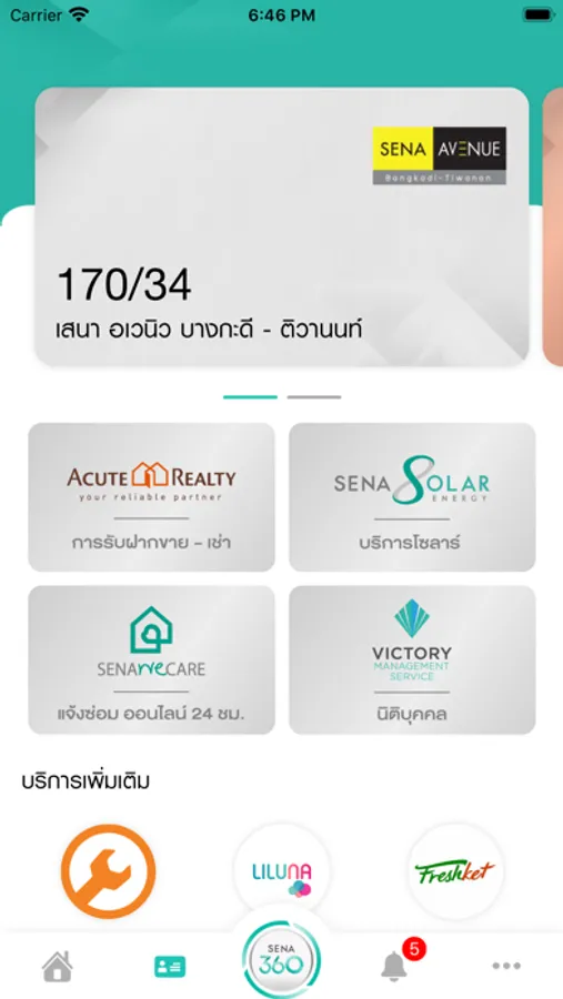 กว่า 30 ปี ที่บริษัทเสนาดีเวลลอปเม้นท์จำกัด(มหาชน) หรือ SENA ดำเนินธุรกิจด้านอสังหาริมทรัพย์ด้วยความโปร่งใสและเข้าใจความต้องการของผู้ซื้อ ภายใต้แบรนด์ PITI / NICHE / THE KITH / SENA PARK GRAND / SENA VILLE เป็นต้น ซึ่งสิ่งสำคัญที่ทำให้เรายังคงเติบโตอย่างมั่นคง คือการเลือกที่จะให้คุณภาพชีวิตที่ดีกับทุกครอบครัวในรั้วโครงการเสนา ด้วยการดูแลเอาใจใส่อย่างใกล้ชิด เพราะ “ความไว้วางใจจากลูกค้าคือความภูมิใจของเรา” เราจึงออกแบบ Application ที่ชื่อ SENA 360 เพื่อเป็นช่องทางในการสื่อสารที่สะดวกรวดเร็วและครบวงจรซึ่งจะช่วยให้ลูกค้าสามารถแจ้งซ่อมกับทีมงาน SENA We Care ได้ทันทีที่เกิดปัญหาขึ้นที่บ้านของคุณ ทั้งยังติดตามข่าวสารภายในโครงการที่ท่านพักอาศัยจากทีมงานนิติบุคคล Victory Property Management และยังมีบริการรับฝากเช่า – ขายจาก Acute Realty สำหรับลูกค้าที่ซื้อเพื่อลงทุนหรือต้องการขยับขยายครอบครัวที่ใหญ่ขึ้น